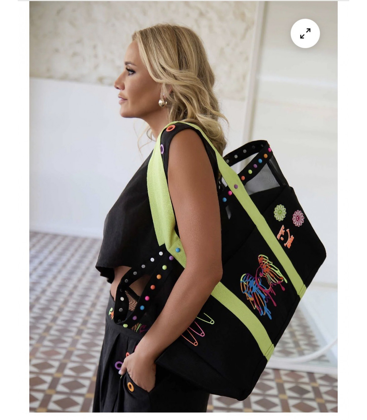 Bolso Petirrojo Camaleónica by Capriche – Shopper Negro Mujer Detalles Flúor