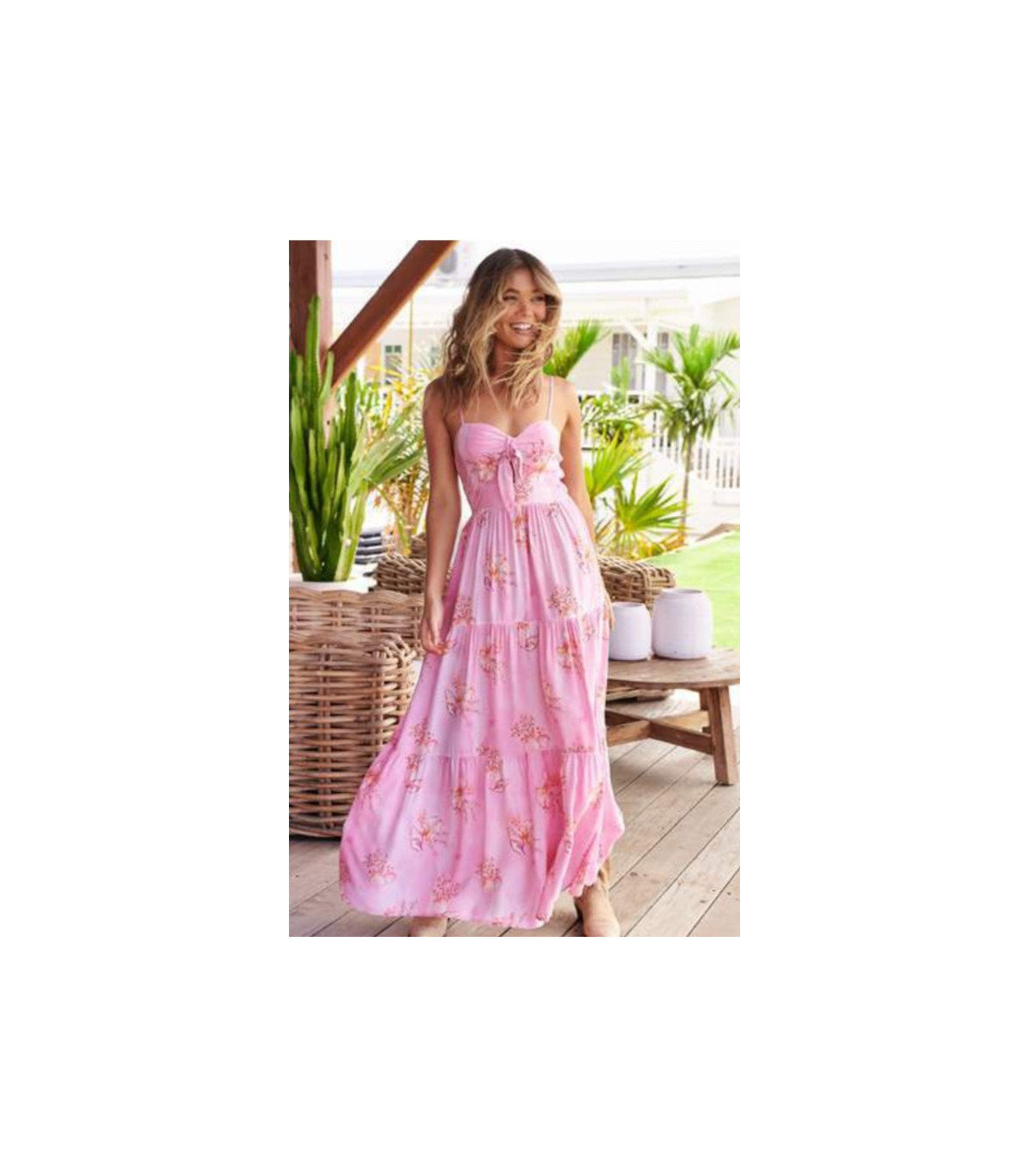 Descubre el vestido Romance Prince de The Jaase en tonos rosas. Largo, fluido y con un estampado veraniego que realza tu estilo. Disponible en FriendsnShop.