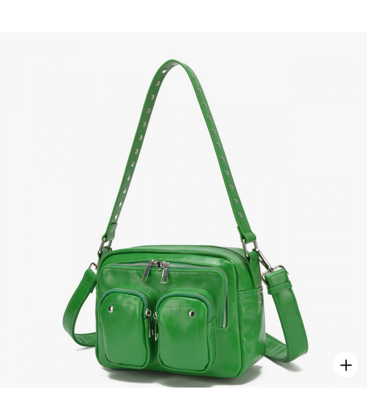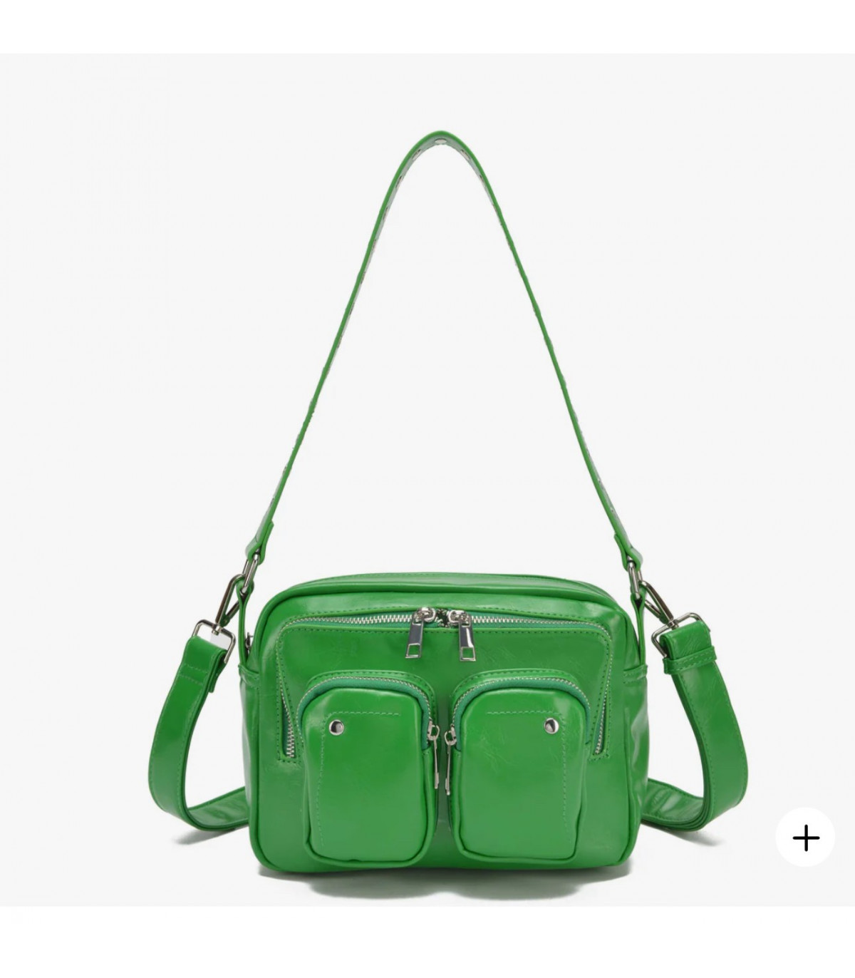 Ellie Wrinkle en color verde tiene dos bolsillos delanteros, un compartimento principal y un compartimento más pequeño, todos con cierres de cremallera. El bolso tiene una correa fija pero también viene con una correa ajustable y desmontable, lo que te permite llevar el bolso como prefieras. Esto lo convierte en un bolso perfecto para el día a día.
