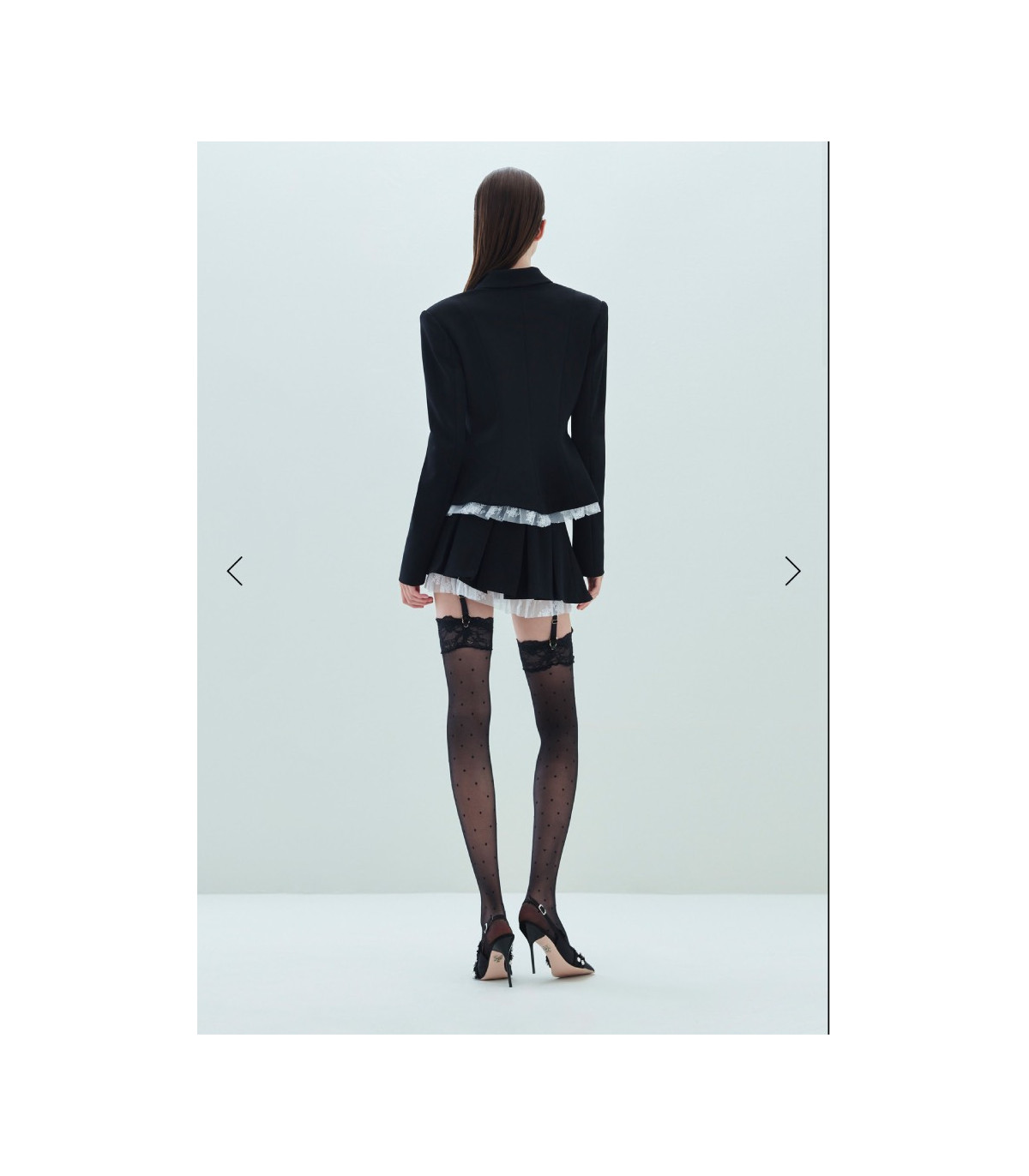 Femenino, pero con un toque dramático: entra en escena el blazer Shana. Un cuello camisero y un cierre de botones consolidan sus orígenes de sastrería, mientras que un ribete de encaje añade un toque de romance oscuro. Adornado con un brillante broche con el logotipo de Aniye By.