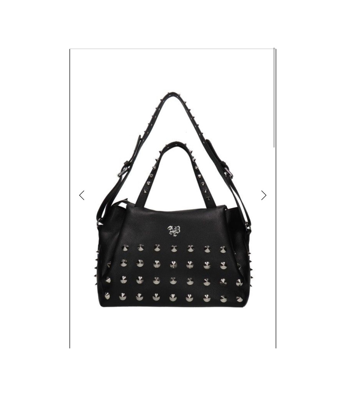 Bolso bandolera de gran tamaño. Modelo con tachas puntiagudas que le aportan personalidad y carácter. Además, cuenta con cómodas asas y cierre de cremallera, lo que lo hace cómodo y práctico. El logo AB metalizado en la parte central delantera personaliza aún más la pieza.