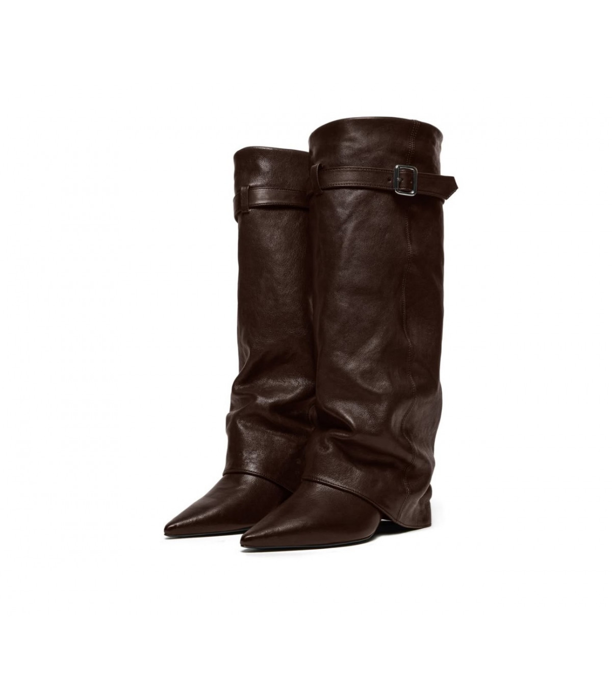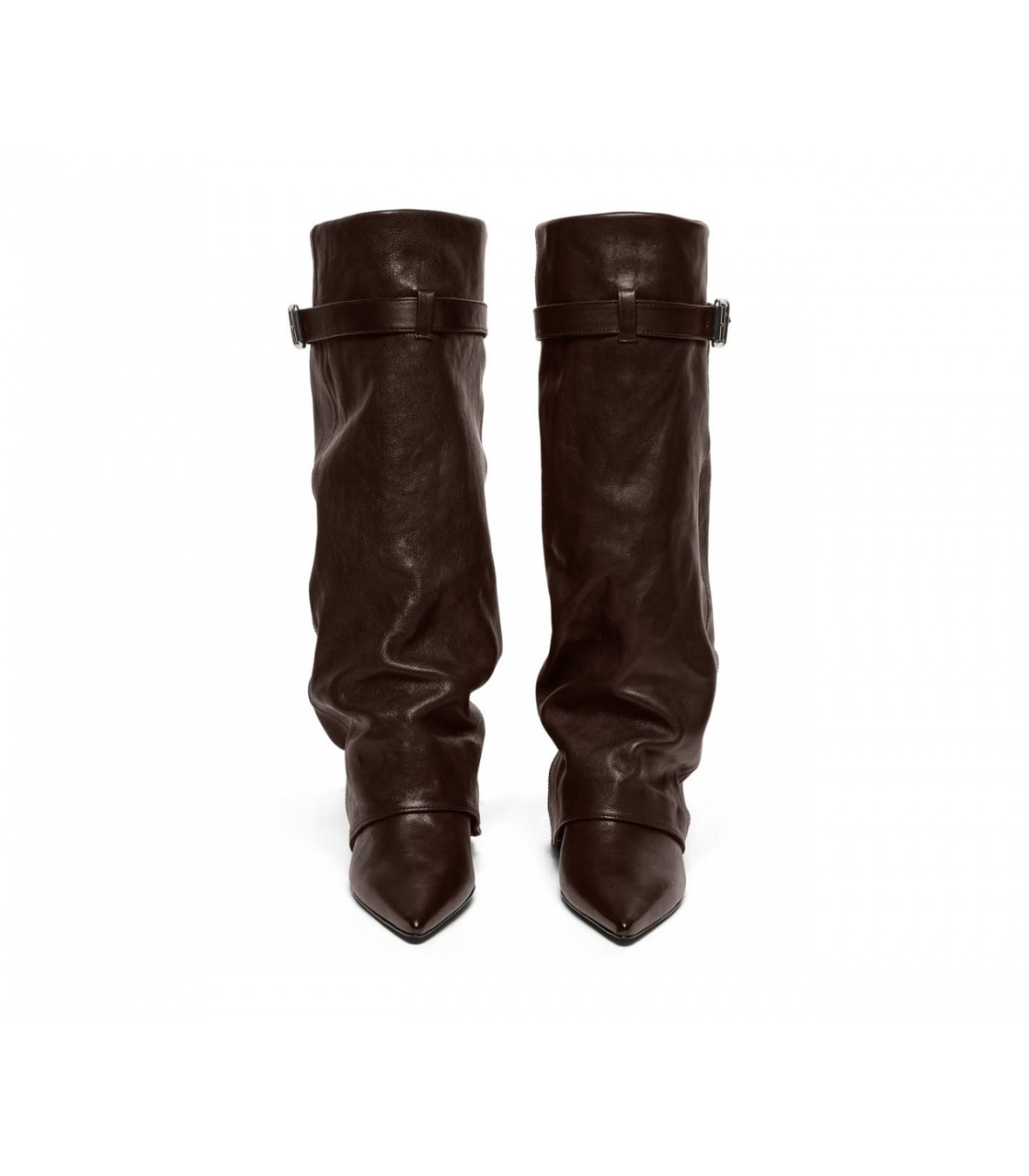 Las botas Herin de Aniye By combinan cuero suave , diseño holgado con plisado natural y correa ajustable, evocando el estilo urbano de los 80.