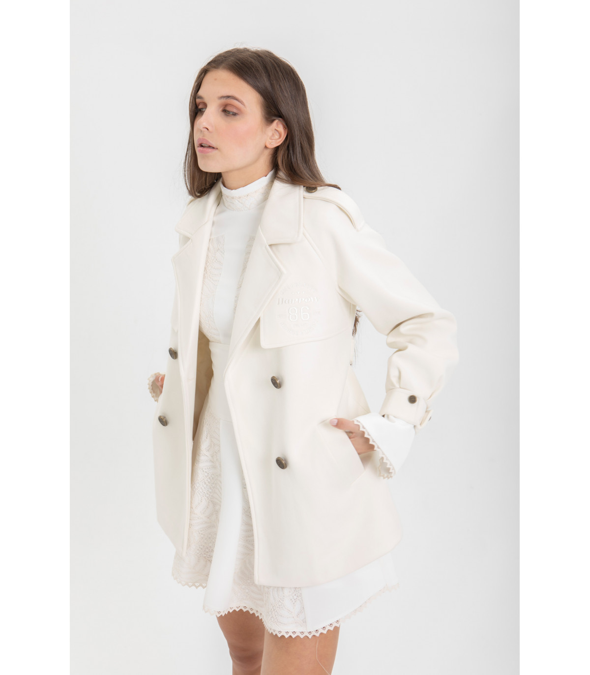 Abrigo estilo gabardina corto blanco de Highly Preppy en Friendsnshop: diseño elegante, moderno y perfecto para looks sofisticados y urbanos.