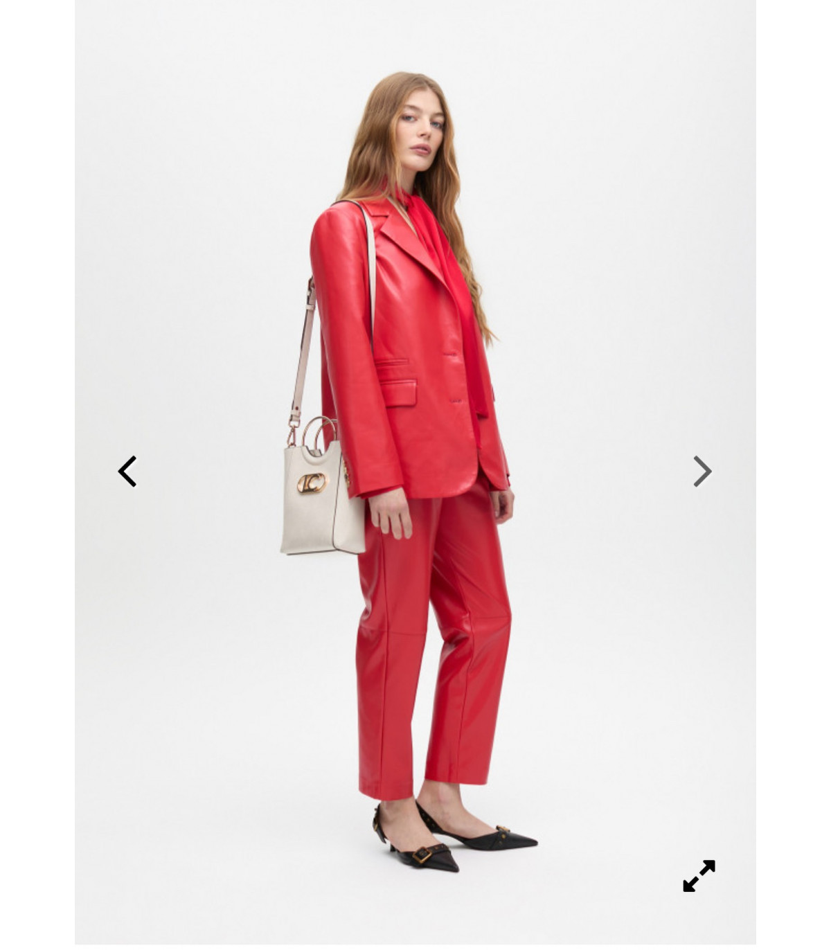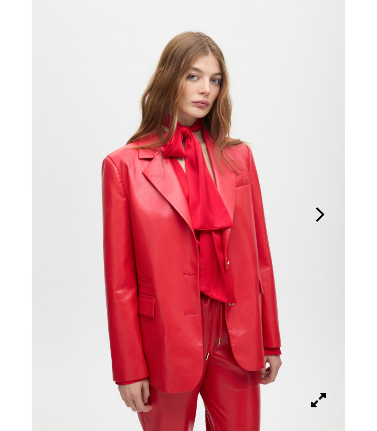 Americana recta Lola Casademunt con efecto piel brillante, solapa clásica y cierre de dos botones. Look contemporáneo y sofisticado en Friendshop.