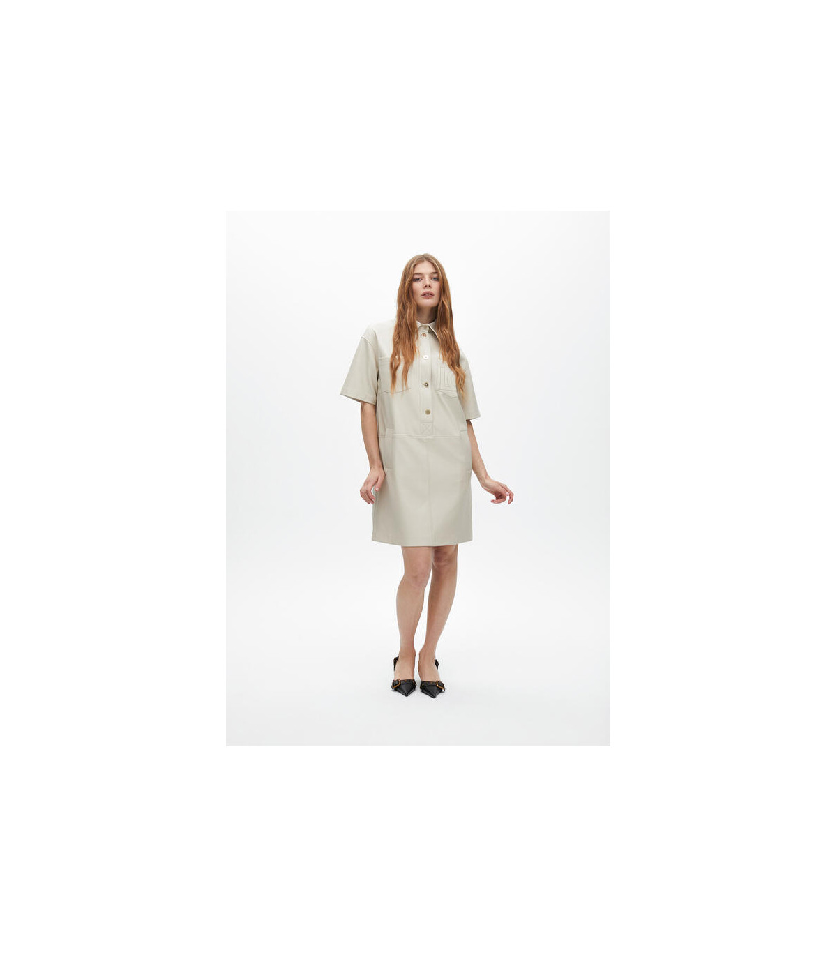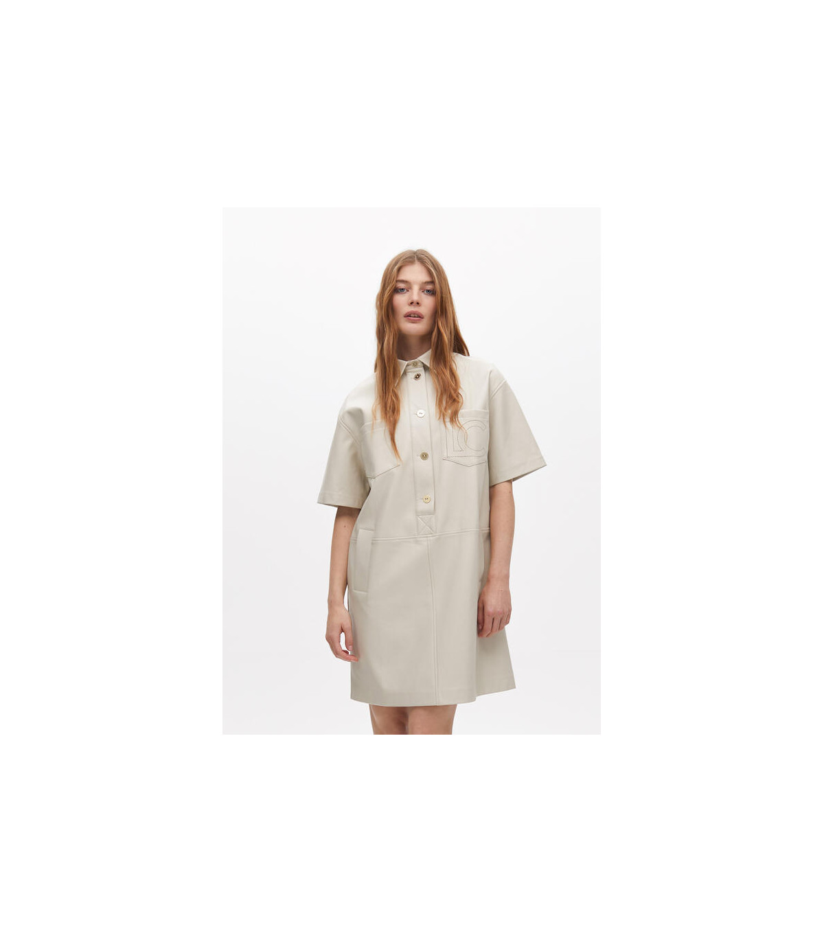 Descubre el vestido oversize mini efecto piel beige de Lola Casademunt en Friendshop. Estilo moderno, cómodo y sofisticado, perfecto para tus looks urbanos.