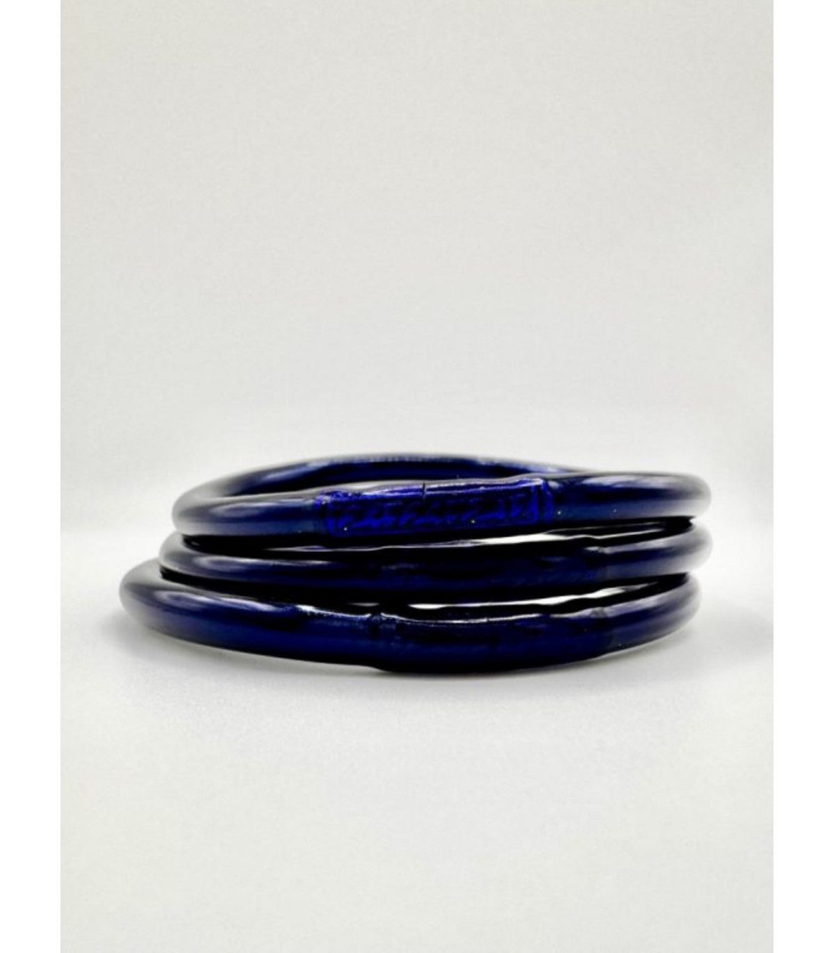 Pulsera Lisa Azul Noche de JewelsCentury21, hecha a mano con pan de oro. Flexible, 100% waterproof y símbolo de unidad y buena suerte.