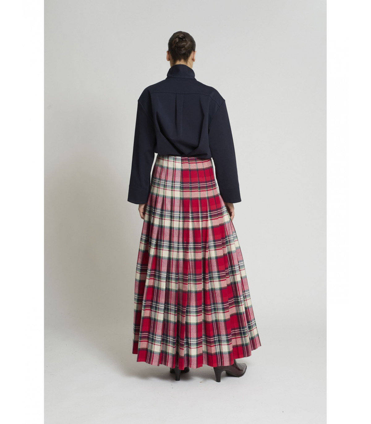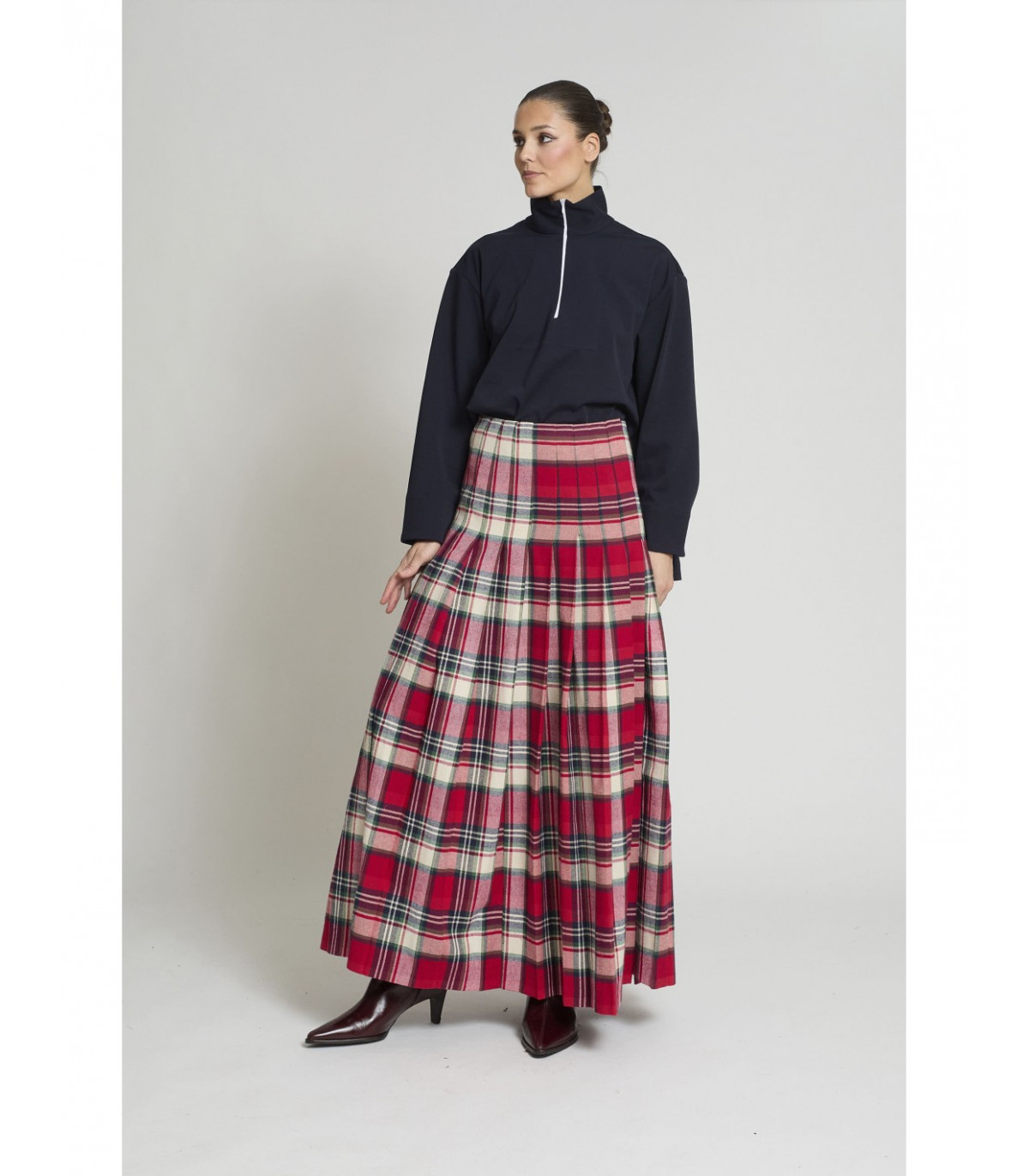 Falda ana tableada de cuadros rojos mujer – Zaitegui