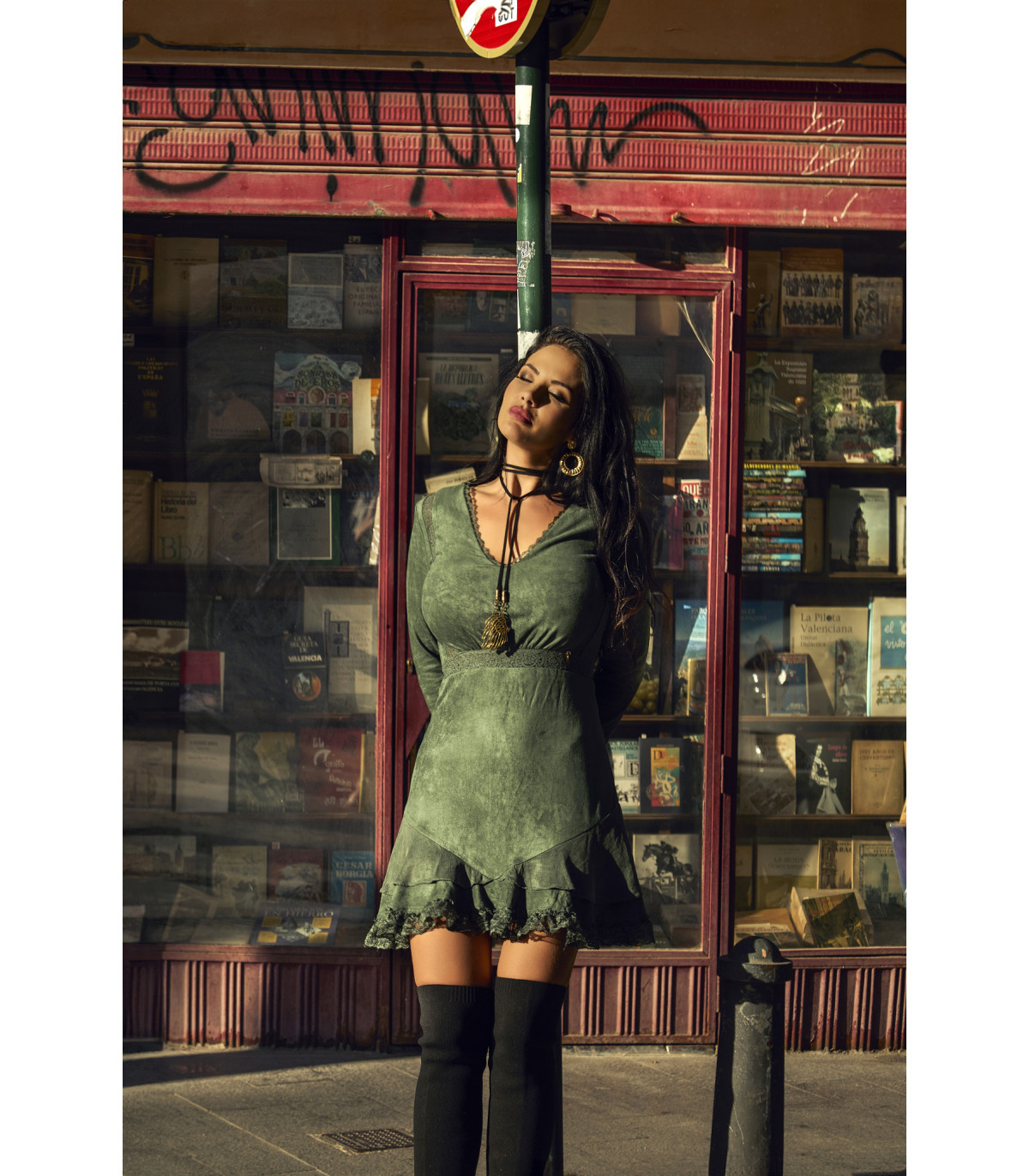Vestido Anturio de Camaleonica, un diseño elegante y versátil para la moda mujer otoño invierno. Disponible en Friendshop Burgos y online.