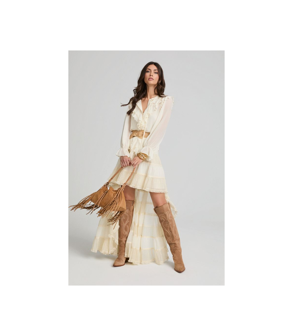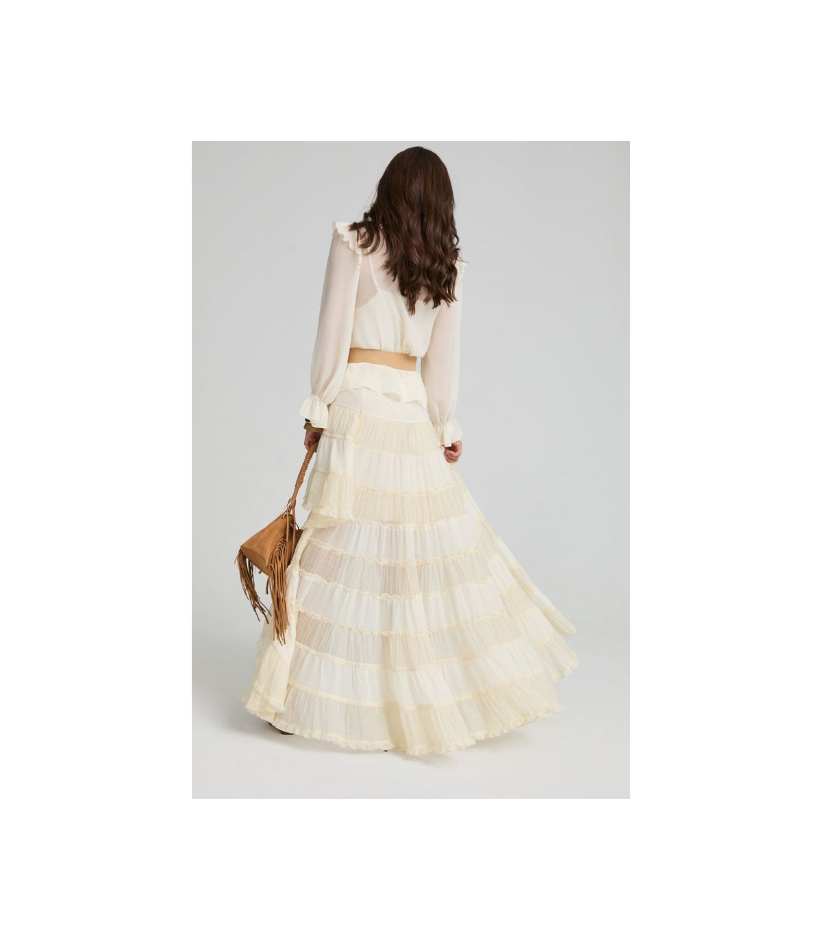 La Rapsodia Skirt de Fetiche Suances es una falda boho chic, elegante y versátil. Perfecta para looks sofisticados y femeninos esta temporada.