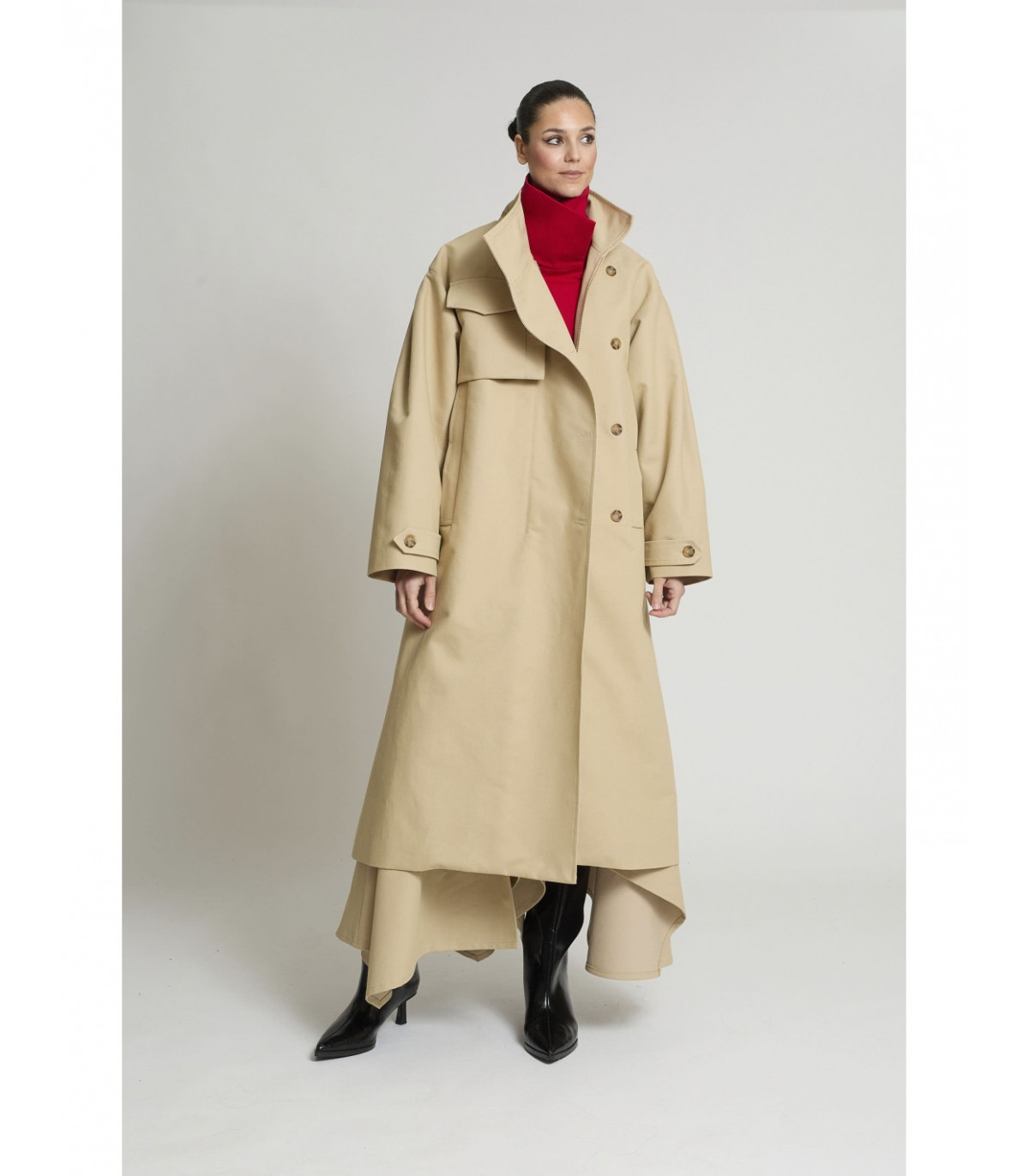 Descubre la gabardina japonesa larga de Zaitegui, una prenda de diseño atemporal con corte minimalista y sofisticado para mujeres con estilo.