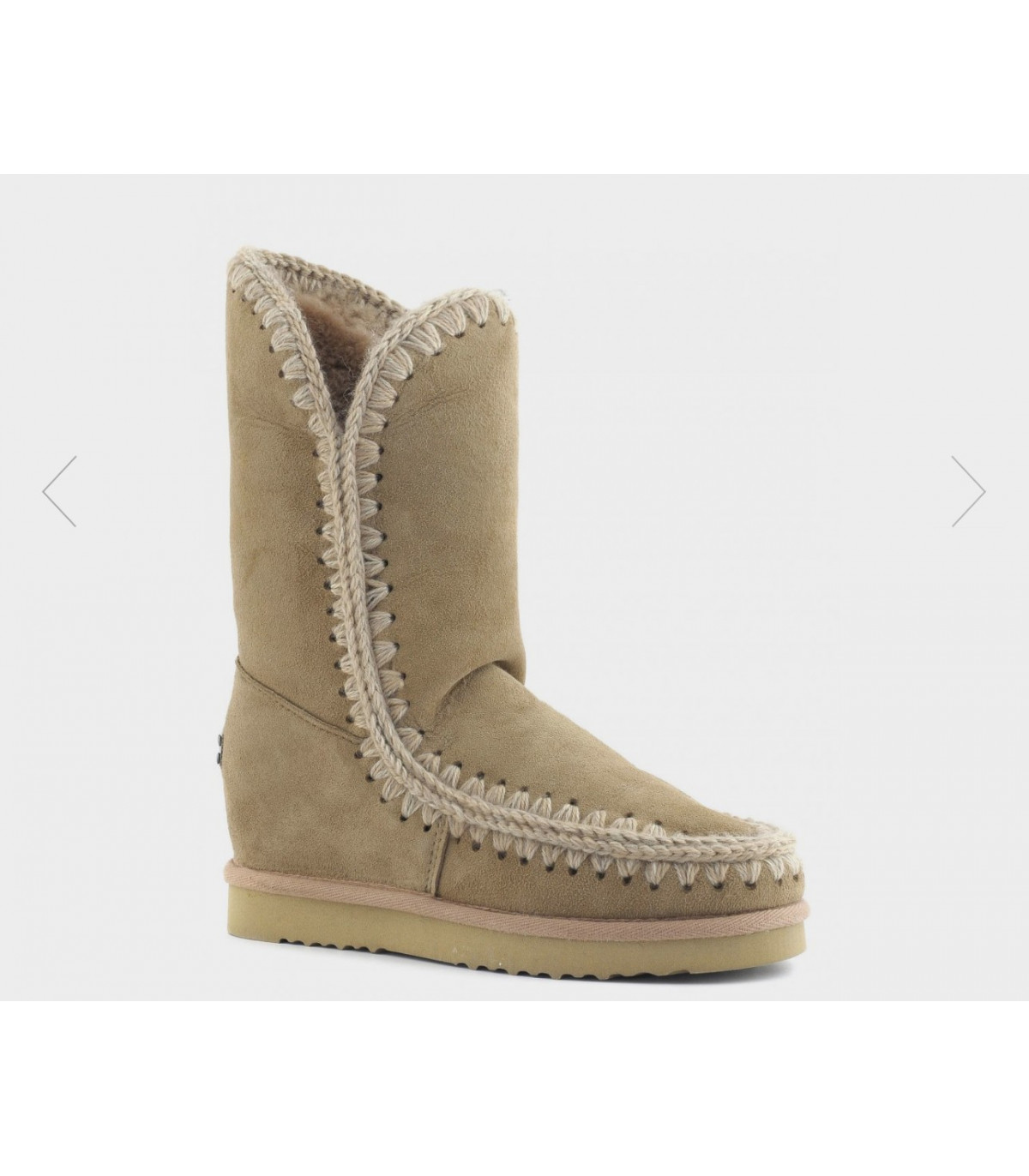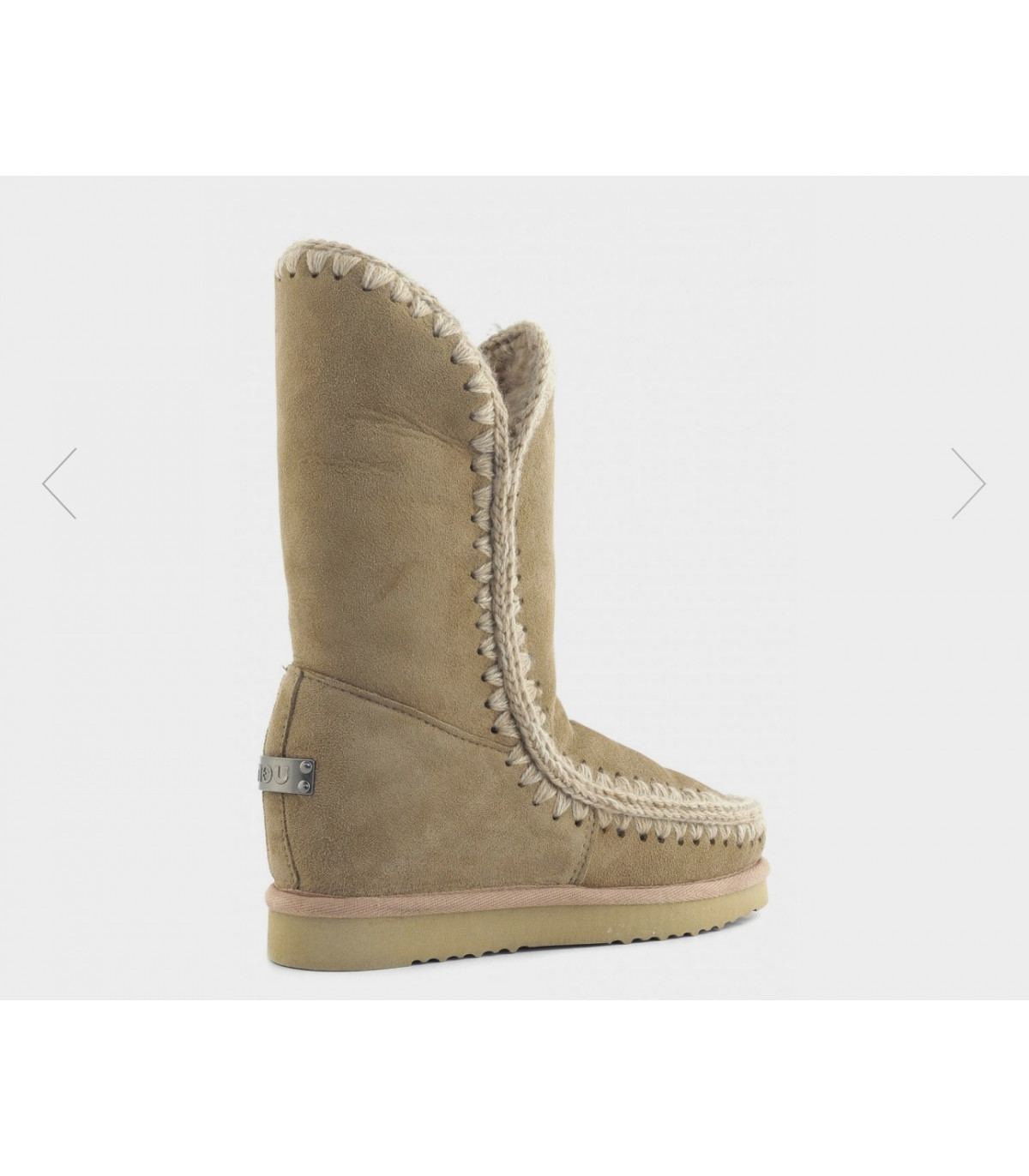 Botas Eskimo Inner Wedge Tall CAM de MOU. Diseño artesanal en ante camel con cuña interior y forro de piel de oveja. Comodidad y estilo.