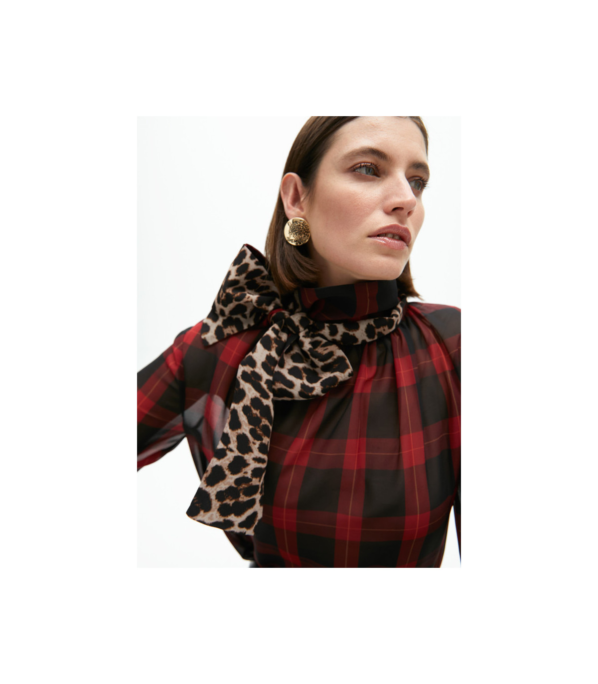 La camisa lazada animal print de Lola Casademunt es la prenda perfecta para aportar estilo, personalidad y un toque salvaje a tus looks de temporada. Confeccionada en un tejido ligero y fluido, destaca por su estampado animal print exclusivo y por su elegante lazada frontal, que estiliza la figura y añade un acabado femenino y sofisticado.