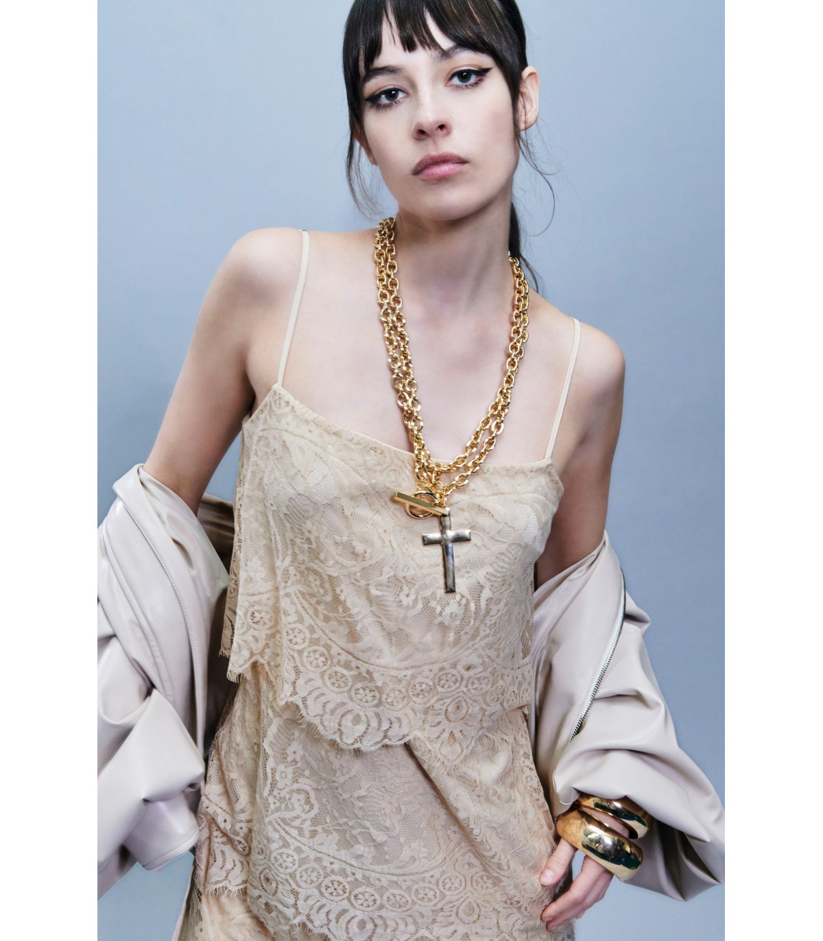 El Collar Chain Necklace de Aniye By (Ref. AB-CHN-001) es un accesorio icónico que aporta un toque rock, urbano y sofisticado a cualquier look. Su diseño de cadena dorada se completa con un colgante en forma de cruz, creando una pieza con carácter y fuerte identidad de estilo.