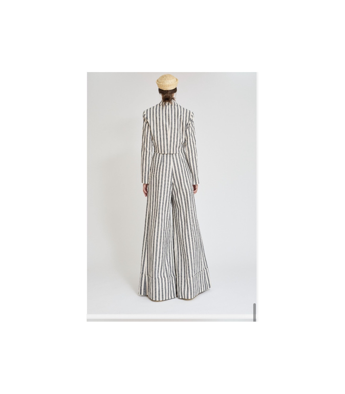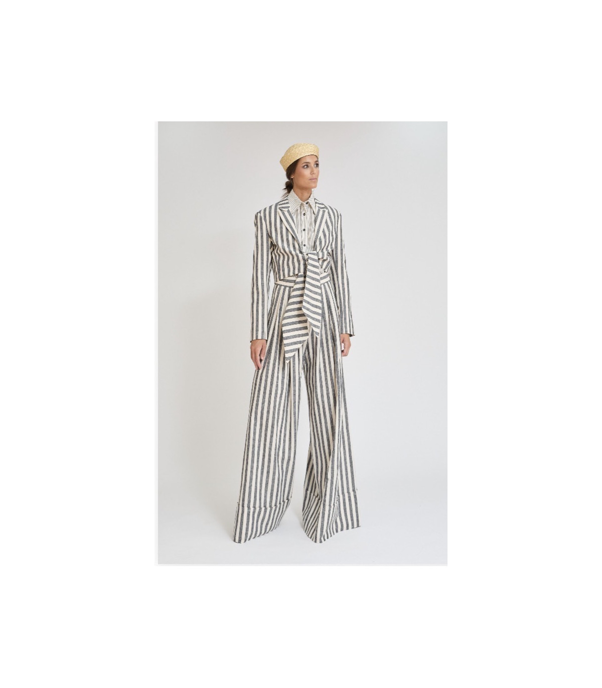 La Americana Lazo de Zaitegui es una pieza sofisticada y arquitectónica que redefine el traje femenino contemporáneo. Confeccionada en mezcla de algodón-lino, combina estructura y ligereza, convirtiéndose en la prenda perfecta para la temporada primavera-verano.