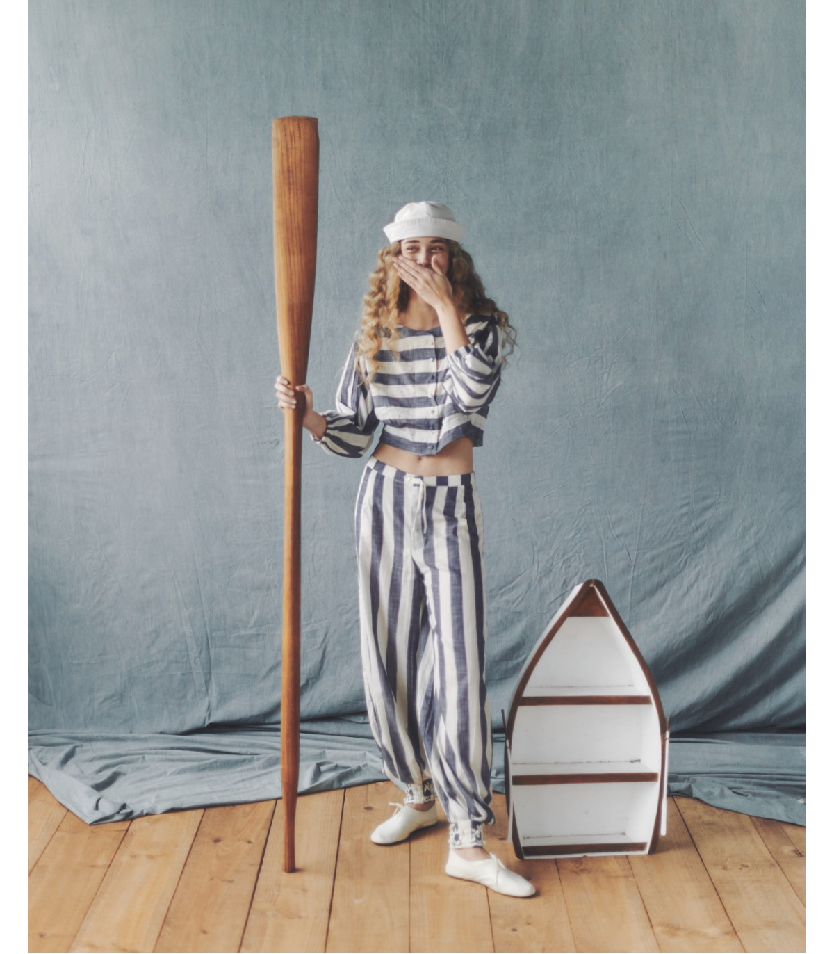 Compra la camisa Gaubea de Zaitegui en FriendsnShop. Camisa corta 100% algodón con rayas crudas y azules, fresca y elegante. Colección SS26.