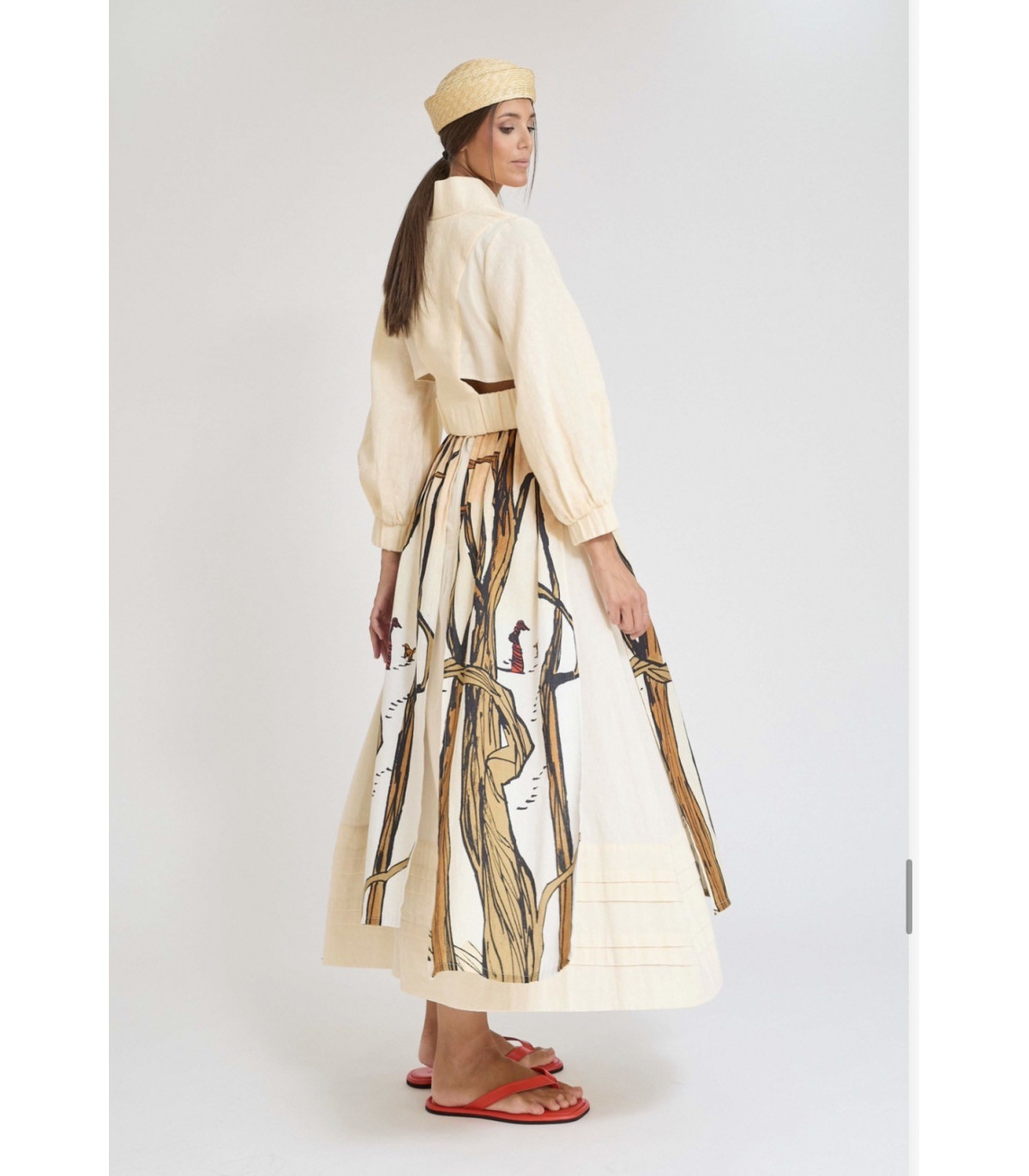 Descubre la Falda Entzia de Zaitegui en FriendsnShop. Falda midi de paneles en algodón 100% color crudo con estampado exclusivo. Colección SS26.