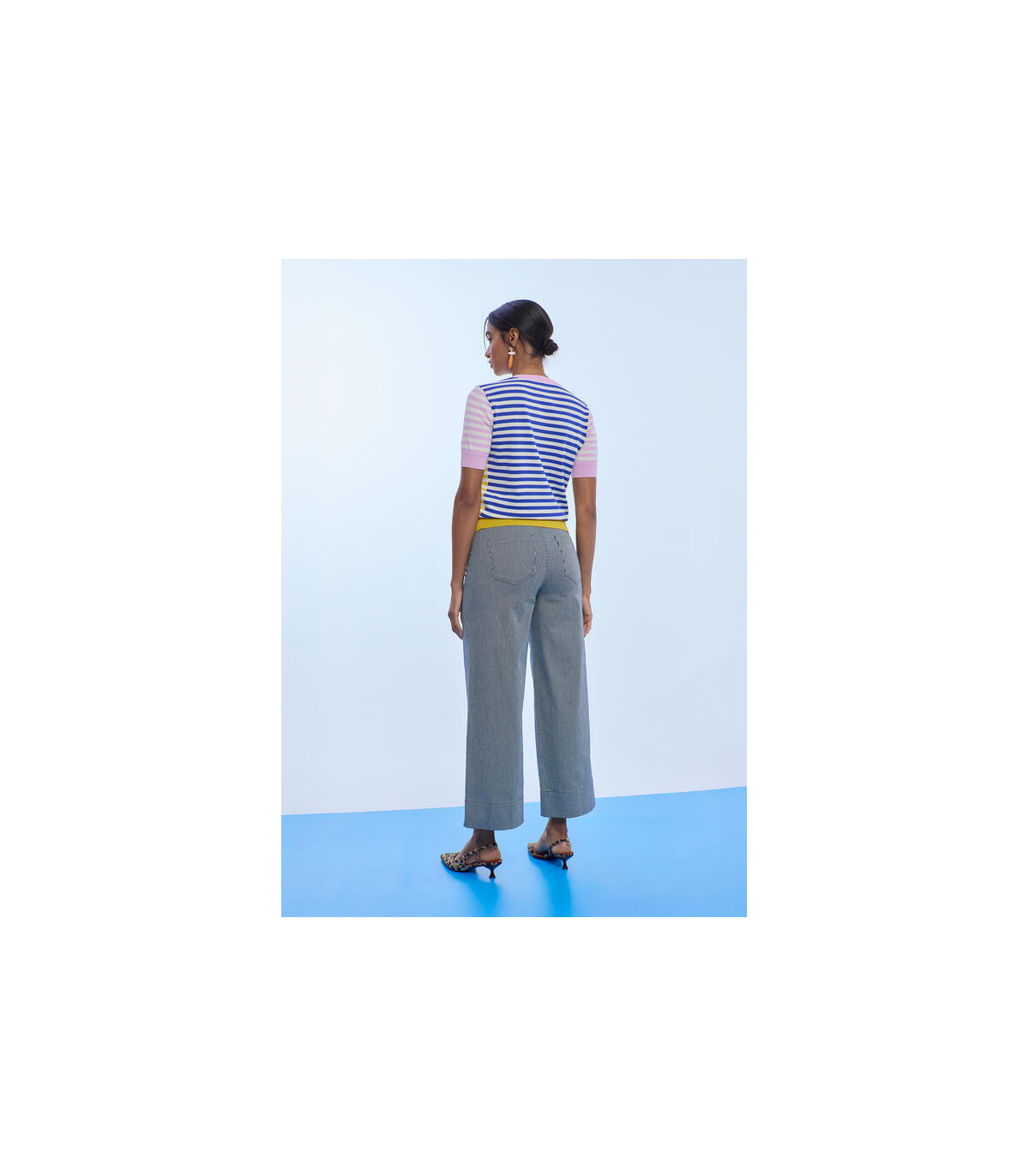 El culotte de sarga con rayas de Lola Casademunt es una prenda sofisticada y actual que combina comodidad y estilo en un diseño favorecedor.