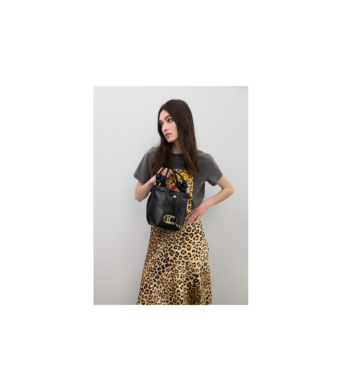 Su formato compacto tipo saco lo convierte en una opción ideal para llevar lo imprescindible con estilo: móvil, llaves, tarjetero y pequeños esenciales.