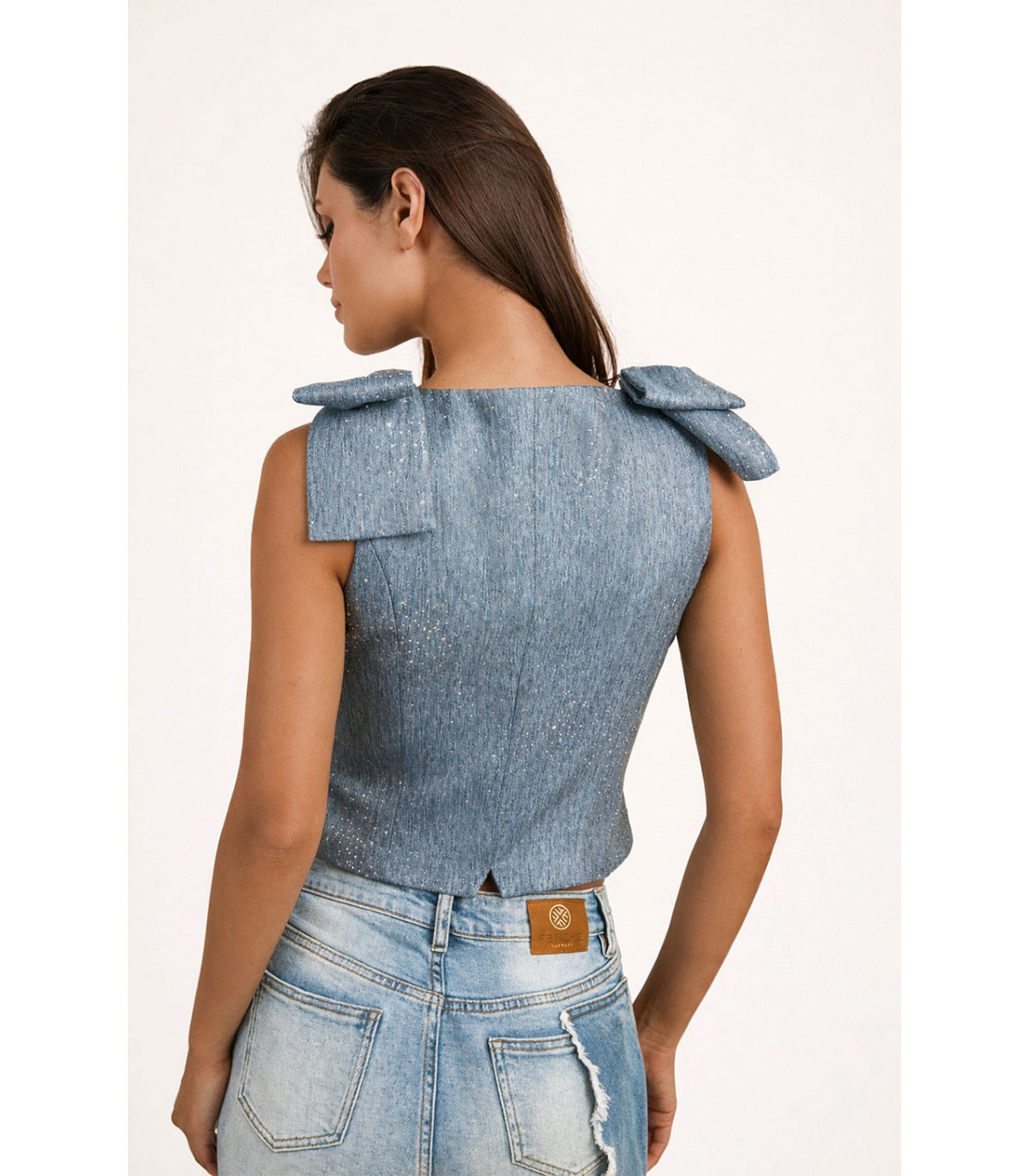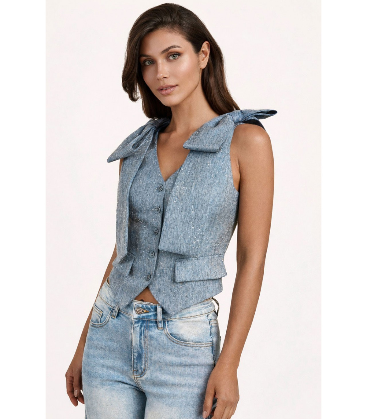 Starlight Vest Fetiche Suances – Chaleco Elegante Brillo Azul Mujer