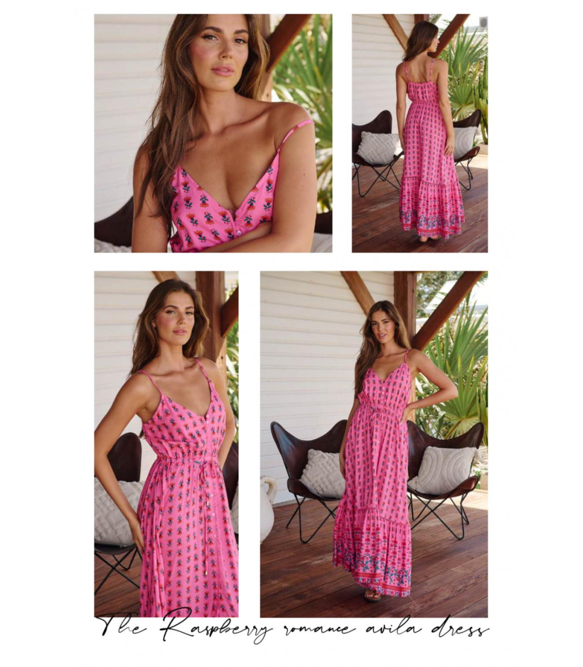 Descubre el vestido Romance Prince de The Jaase en tonos rosas. Largo, fluido y con un estampado veraniego que realza tu estilo. Disponible en FriendsnShop.