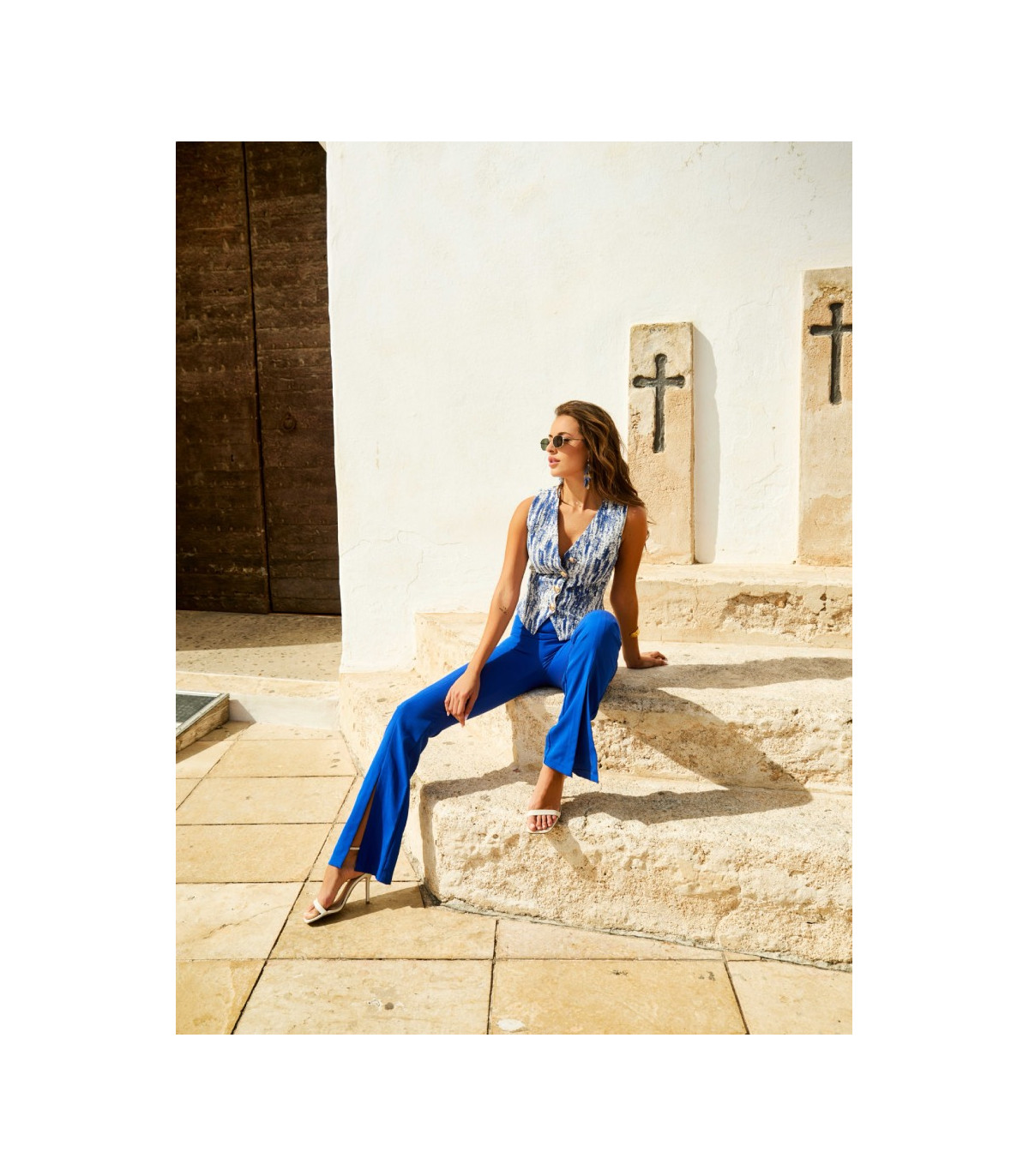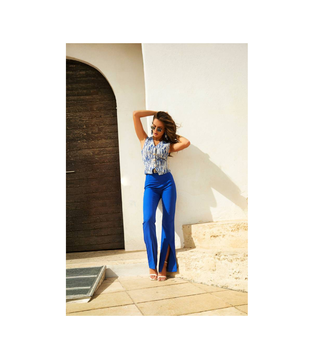 Descubre el Top Emmy de Camaleónica, un crop top con escote recto y tirantes trenzados en azul y blanco. Disponible en Friendsnshop, moda con estilo artesanal.